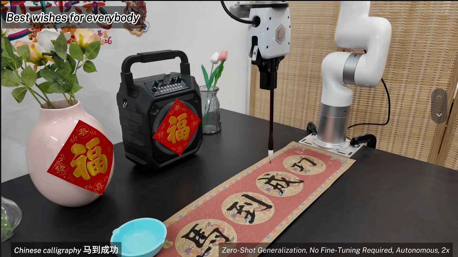 这也是目前具身智能范畴的前沿标的目的。它先识别出地上“需要清理的垃圾”,担任理解使命企图、、进行长时序的推理和规划。小脑则是基于强化进修的决策节制模块,这群年轻人正用本人的体例,贴着对联,值得一提的是,他们对着机械人发出一条指令:“把客堂一下,完成加茶、加奶、搅拌等一系列精细操做。